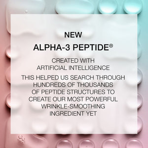 Exclusive peptide targets skin’s natural Collagen, Elastin, and Hyaluronic Acid to visibly plump and smooth