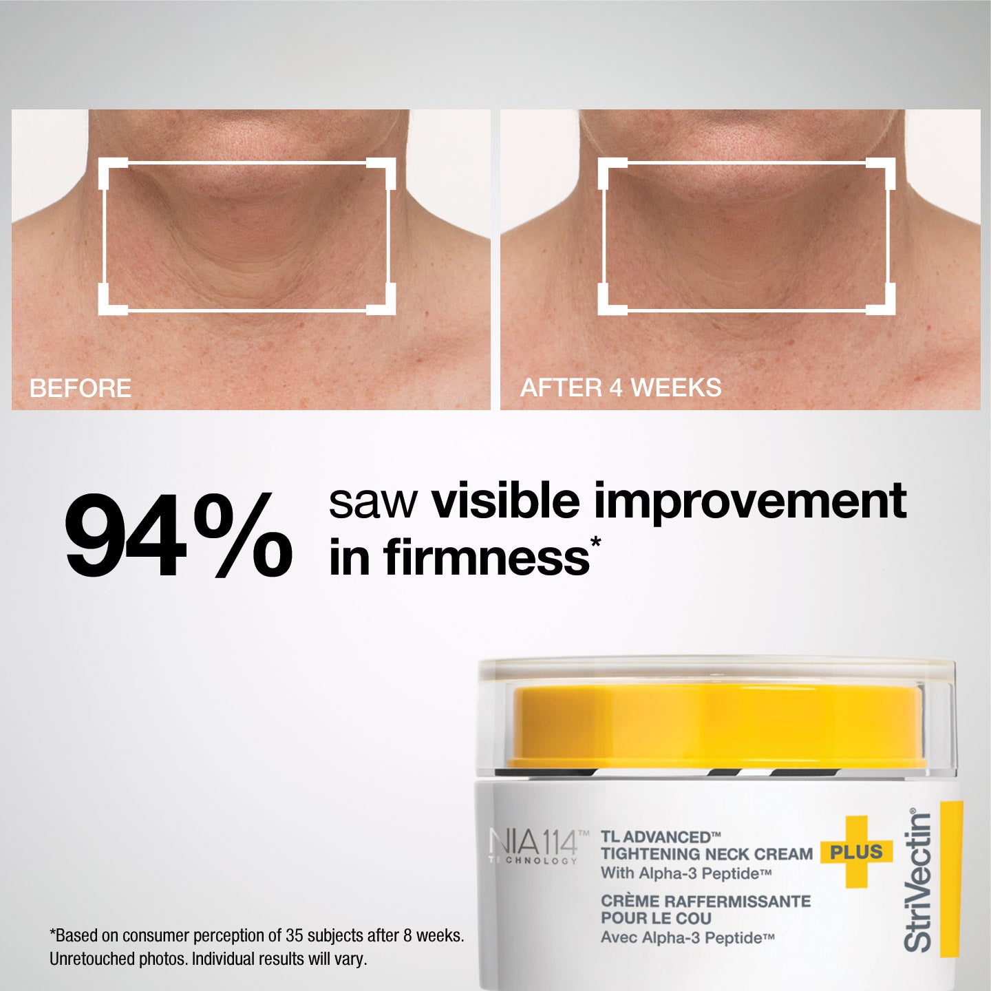 - Apply a thin layer of TL Advanced™ Tightening Neck Cream PLUS to the front of neck, massaging in an upward motion. Apply along jawline and sides of neck, massaging into the décolleté in a circular motion. Use on clean skin morning and night.
